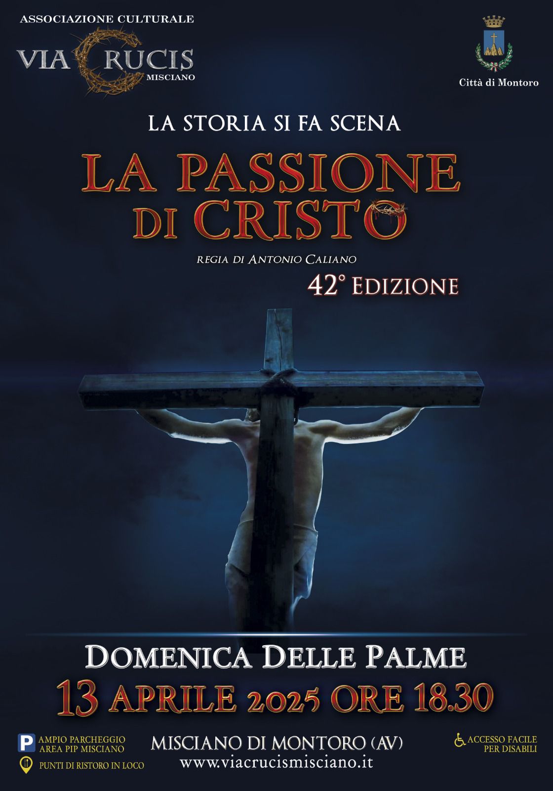 Domenica 13 aprile torna la “Passione di Cristo”, dove è diventata ormai una tradizione pasquale moderna, che quest’anno giunge alla 42a edizione. L’intensa e spettacolare Via Crucis che si celebra nelle strade del piccolo borgo irpino, è curata dall’Associazione culturale APS “Passione di Montoro e vede la partecipazione corale della popolazione con oltre trecento figuranti, che contribuiscono a creare un evento di grande suggestione, sempre più apprezzato dai visitatori che scelgono di assistervi.